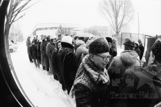 winter snow fur hat visit hospital healthcare Szekszárd Tolna county Hungary 1985 Jenő Bakó