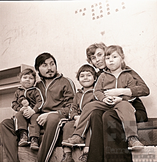 child parent tracksuit family Szekszárd Tolna county Hungary 1973 Jenő Bakó